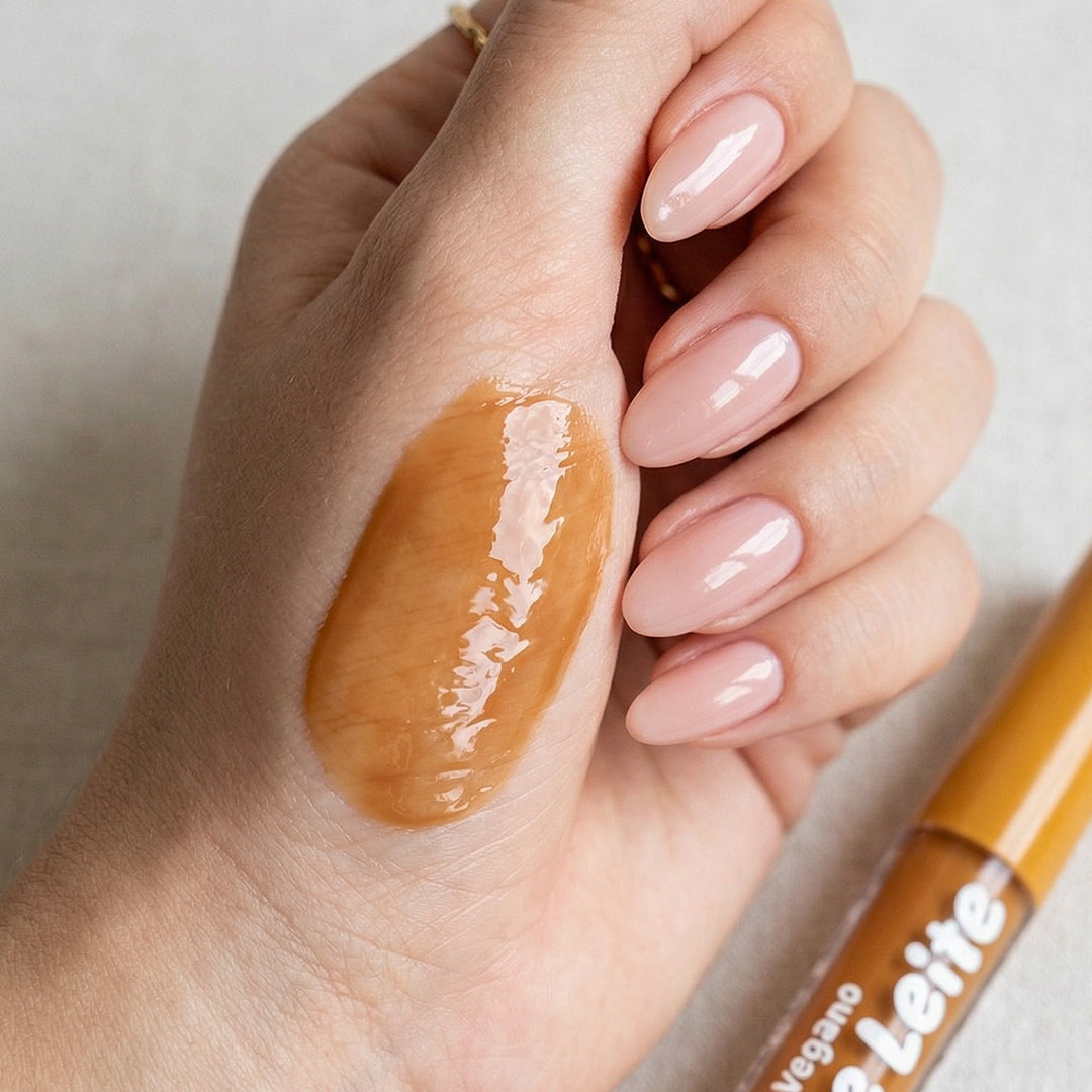 O novo Gloss Labial Vegano Doce de Leite entrega brilho espelhado, conforto absurdo e aquele tom caramelado que deixa qualquer make com cara de tendência — sem grudar e sem pesar.